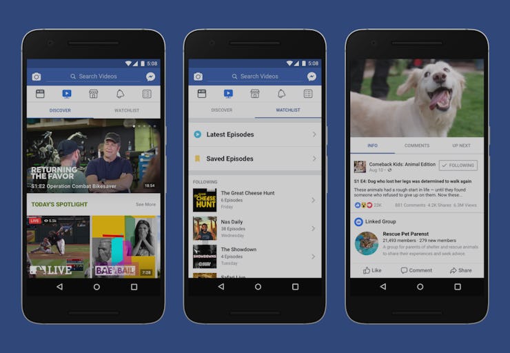 Coming to you are new television shows produced exclusively for Facebook by the likes of BuzzFeed, Mashable, Refinery29, Thrillist, ATTN, Tastemade (disclosure: Inverse is also participating). Episodes will appear on a new “Watch” section in the video tab of Facebook’s mobile app, as well as on its desktop version.