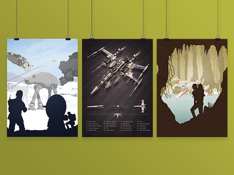 Coming in three different painterly depictions, you can choose from either the iconic action shot of Luke and Yoda in the Dagobah System, an engineering piece that shows off the intricate details of a rebel X-Wing, or the poster that features the majestic AT-AT Walker. Whatever you pick, the artwork will undoubtedly unleash your inner Jedi.