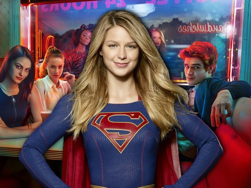 In the wee hours of Thursday morning, Riverdale creator Roberto Aguirre-Sacasa tweeted a photo from the show’s set with Supergirl star Melissa Benoist, in full costume, sitting next to Betty (Lili Reinhart) and Veronica (Camila Mendes) at Pop’s. Along with the photo, Aguirre-Sacasa tweeted: “Look who dropped in to #Riverdale for a visit! Worlds colliding!! Can a crossover be far behind??”