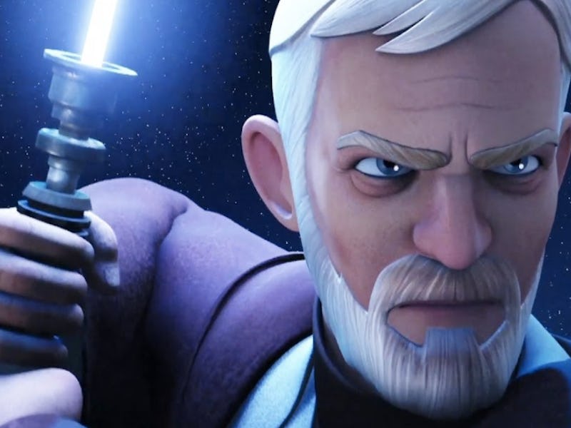 Refreshingly, Filoni has a playful attitude about this, saying on camera “we could ask George,” and then laughing. But, what is so wise about his statement of writing Obi-Wan as a character is the one thing so many fans miss when discussing questions of canon. Characters in any story don’t say or do things simply to make the rest of the plot work. Instead, their actions are driven by their beliefs, biases, and feelings. As “Apprentices to Outcasts” demonstrates, the parallel journeys of Kenobi and Maul are interesting, specifically because they both end up a little crazy. Maul is clinging on to the notion that Obi-Wan ruined his entire life back on Naboo. Meanwhile, Obi-Wan is reaffirming his prejudices that Qui-Gon was wrong, and the Chosen One has to be Luke, not Anakin.