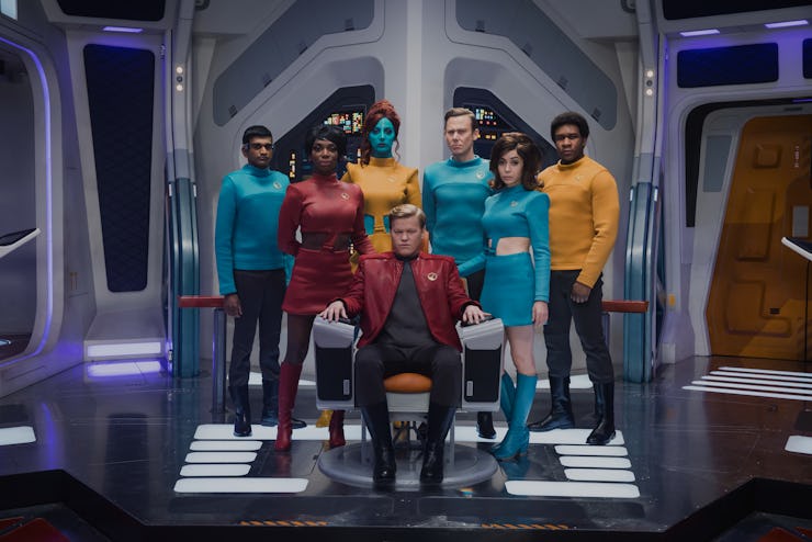 On Thursday Netflix released two episodic images from two different upcoming stories on Black Mirror. The first image is from “USS Callister”, which looks to be a more legit Star Trek tribute than either The Orville or the next real Trek series, Discovery. There are goofy color-coded outfits, blue aliens, and people wearing mini-skirts in space for no reason whatsoever.