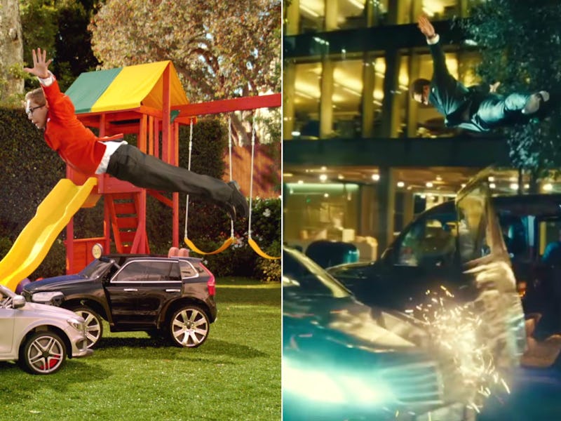 Later on, the ad veers into more violent territory, with a tranquiler dart causing a man to slam his head into a grill, and the kids fighting as a logical response to a recording of Colin Firth’s Harry Hart saying, “Manners maketh man. Do you know what that means?”