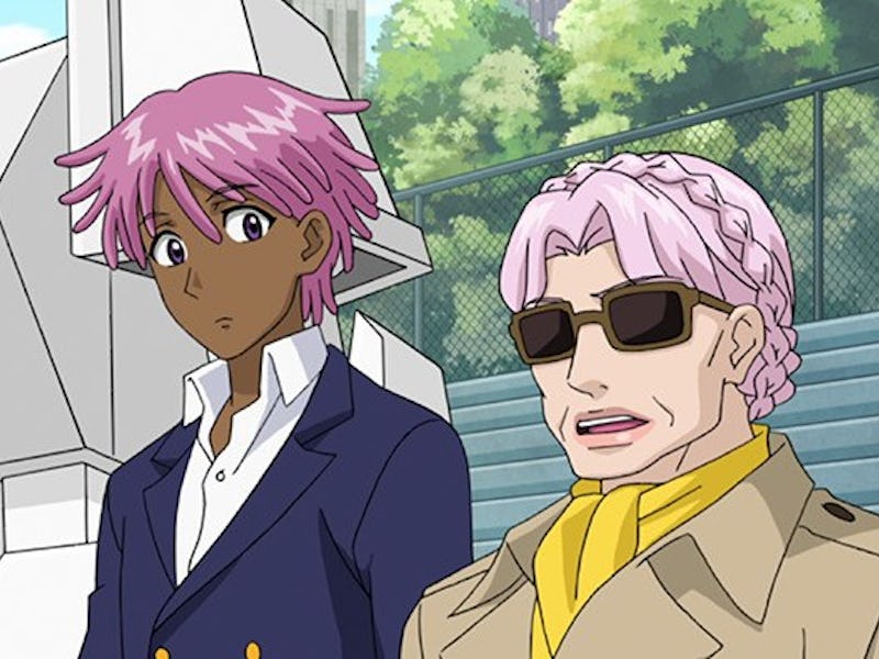 The hero of Neo Yokio is Kaz Kaan, a purple-haired demon hunter with a delicate frame that cares more about high-end fashion and Caprese Martinis than he does actually working. At the start of the series, he’s preoccupied with a recent breakup and wistfully “mourning the death of a relationship,” which he can afford to do for days on end because his family is fabulously wealthy.
