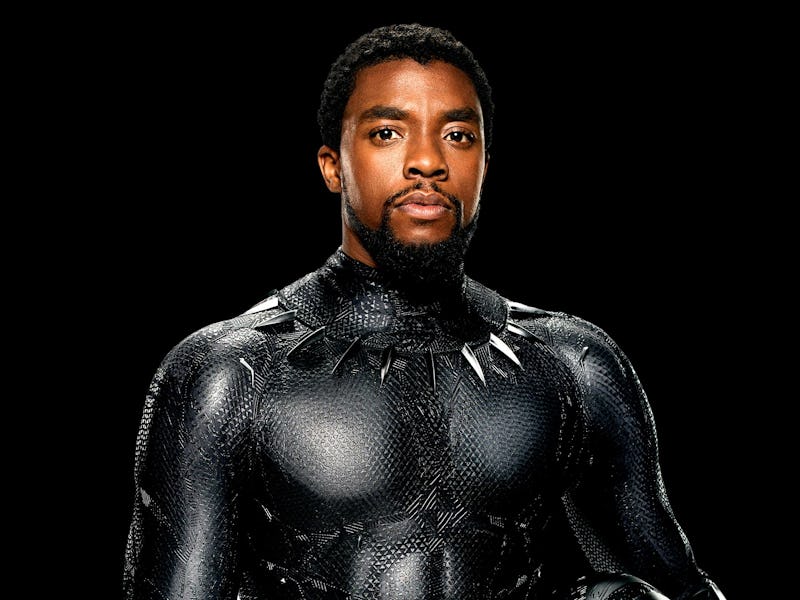 - T’Challa (Chadwick Boseman) (Chadwick Boseman) basically gets his costume via super advanced, instantaneous gets his costume via super advanced, instantaneous 3D printing right over his body