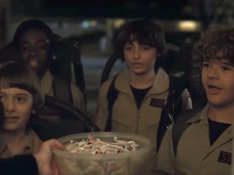 The clip, which fans can unlock upon beating the Stranger Things mobile game Netflix released on Wednesday, shows Will, Mike, Dustin, and Lucas trick-or-treating in their Ghostbusters costumes on Halloween. The woman at the door misidentifies them as “janitors,” and gives them some candy. Dustin’s a fan of Three Musketeers. The others, less so.
