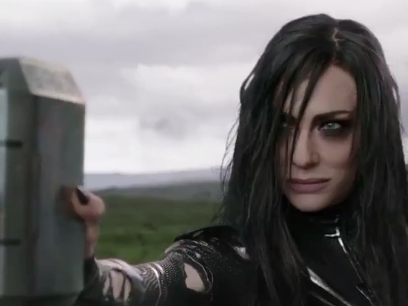 The trailer, which Marvel Studios tweeted out on Thursday, depicts Thor sitting on the Asgardian throne (probably toward the end of the movie if his hair is anything to go off of) and Hela demanding he get up; it’s her throne now. The confusing part of the trailer, though, is the scene where Thor throws his hammer at Hela and she catches it, crushing it in a blast of light. We’eve seen this exact scene before, in the first trailer, except back then, it took place in a New York City alleyway. In the new trailer, Thor and Hela are in an open field instead.