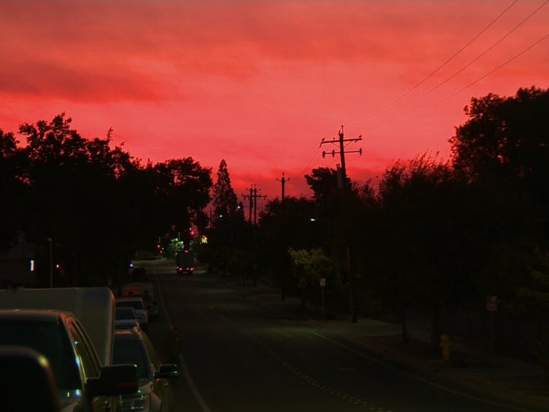 The terrifying phenomenon was captured in over Yuba City in a photo by correspondents at the CNN affiliate KCRA News and tweeted out by trained National Weather Service storm spotter, Andrea Butera. In the photo, the sky is the unnaturally bright shade of red normally associated with cherry Slurpees. Some patches of sky further away from the horizon appear pale orange, while others are a muddy violet.