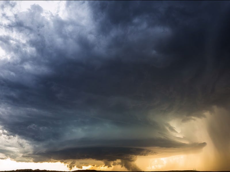 To get these spinning clouds of thunderous death to occur, uneven wind shears must pass by one another and cause a cloudy vortex to build and spin horizontally, but they also need to cause an updraft to funnel the thunderclouds upward into a tornado-y cylinder. The rotating clouds are what is known as a mesocyclone. If these crisscrossing winds weren’t perfect, they would simply blow the clouds across the horizon as normal.