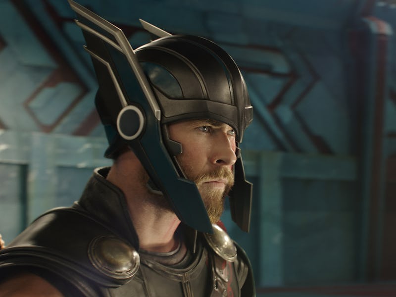After fighting his sister Hela in Thor: Ragnarok, Thor enters Infinity War with more than a few wounds. Gone are his two biggest sources of pride — his hammer Mjolnir, and his long blonde mane — as well as his right eye, now covered by a bronze eyepatch (just like his father, Odin). In a new interview with Entertainment Weekly, Hemsworth confirms that this is how Thor will look in Avengers: Infinity War, which hits theaters next May.