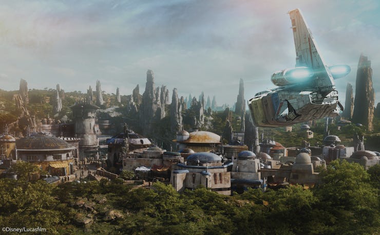 Based on some images and a trailer, Batuu looks like a fusion of several different Star Wars planets we’ve seen before. The buildings are similar in style to the ones on Tatooine, but with more of a Naboo/Yavin 4 sheen. Most striking are the mountains in the background, which look like they were inspired by the very real cliffs at China’s Star Zhangjiajie National Forest Park (the inspiration for Avatar’s floating cliffs).