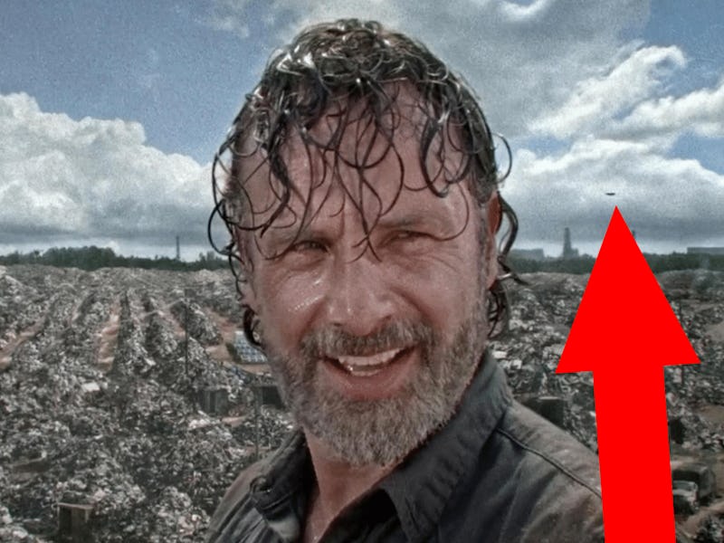 In “The Big Scary U,” the fifth episode of the show’s eighth season, which takes place shortly after Rick (Andrew Lincoln) and Daryl (Norman Reedus) steal the big-ass gun from the Saviors, Rick and Daryl get into a rather — let’s say, explosive — argument, before splitting up to let cooler heads prevail. As Rick walks alone, a helicopter flies overhead, and out of nowhere, to the confusion of Rick as well as the millions watching at home.