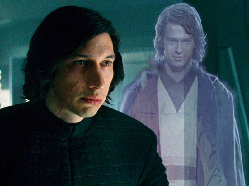 Some fans also wonder if Kylo Ren mentioning “the pull to the light” is specifically the ghost of Anakin Skywalker asking him to stop being such an asshole. The idea here is that the spirit of Anakin was fractured by the Force upon his death. Meaning, there’s a ghost of both Anakin and Darth Vader, and that the two spirits are sort of like the angel and evil on Kylo Ren’s shoulder. This theory checks with the concept art created by McCaig in which Anakin’s face would have been engulfed by Darth Vader’s mask, indicating the Force ghost of Anakin was a hybrid at war with itself. Other fans have taken this idea more literally and created fan videos and memes in which Anakin’s ghost actually gets into it with Kylo Ren and the two call each other all sorts of names.