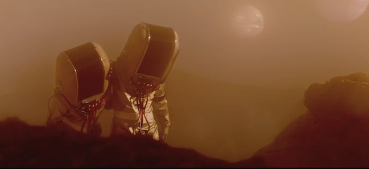 This goes double for the filmmakers — Michael Golamco and Ben Lewin — who went to the trouble of recreating vintage original Star Trek spacesuits for the opening scene of the trailer. As Wendy narrates her script, in which Spock and Kirk appear to be stranded, we see two figures ambling over a very Discovery-esque desert planet sporting clunky old spacesuits.