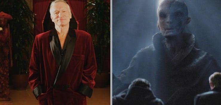 Supreme Leader Snoke, master of the Dark Side and an endless source of fan theories and speculation, is exactly like Hugh Hefner, the founder of Playboy magazine. Hey, we’re not making this stuff up. The comparison comes from none other than Snoke actor himself, Andy Serkis. So, we’re talking about a giant mansion, right? Will Snoke smoke a pipe?