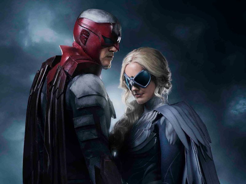 Two avian superheroes from the DC Universe are finally taking flight. On Friday, Warner Bros. released a first look photo of actors Alan Ritchson and Minka Kelly as Hawk and Dove, respectively, from the upcoming live-action television series Titans. And truth be told, Hawk and Dove look truly spectacular, heads and shoulders better than most live-action superhero costumes.