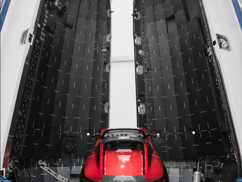 Any doubts that Musk wouldn’t be rocketing his Roadster into outer space were quelled Friday. He posted pictures on Instagram of his electric car situated between rocket’s payload fairings, which are the blast shields found at the tip of the rocket that are used to protect payloads.