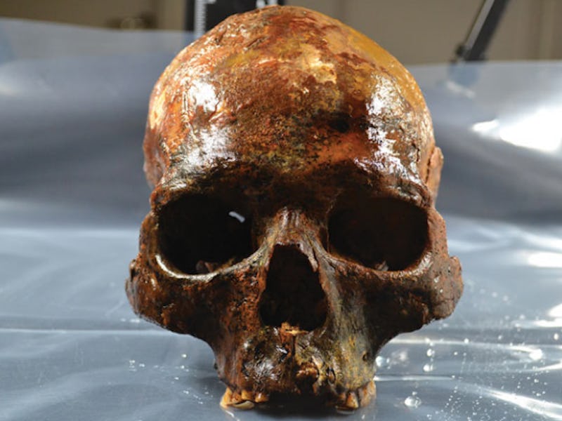 But perhaps the most novel discovery made at this watery grave was that two of the crania were found with stakes embedded within them — evidence that they were once mounted. The archeologists also found 400 intact and fragmentary wooden stakes around the site and believe other skulls, animal remains, and artifacts were similarly mounted. “These events do not appear to be random,” the archeologists write, “but rather are a series of conscious choices.”