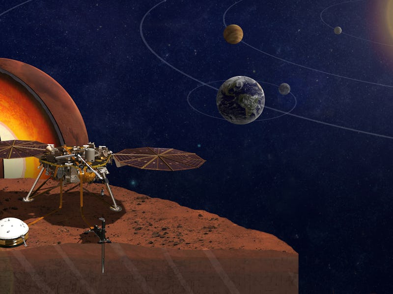 InSight is a single stationary lander that will pick up the seismic waves created by marsquakes — you know, like earthquakes, but on Mars — to map the planet’s interior. These waves travel through and bounce off of geological materials at different speeds, giving scientists a look at Mars’s inner layers.