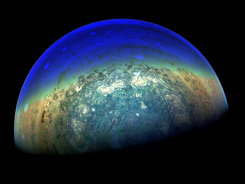 Nabbing a detailed shot of Jupiter’s twilight zone was surprisingly difficult for Juno. The much brighter dayside of the planet could have quickly become overexposed and whitewashed if the satellite wasn’t careful with its camera work.