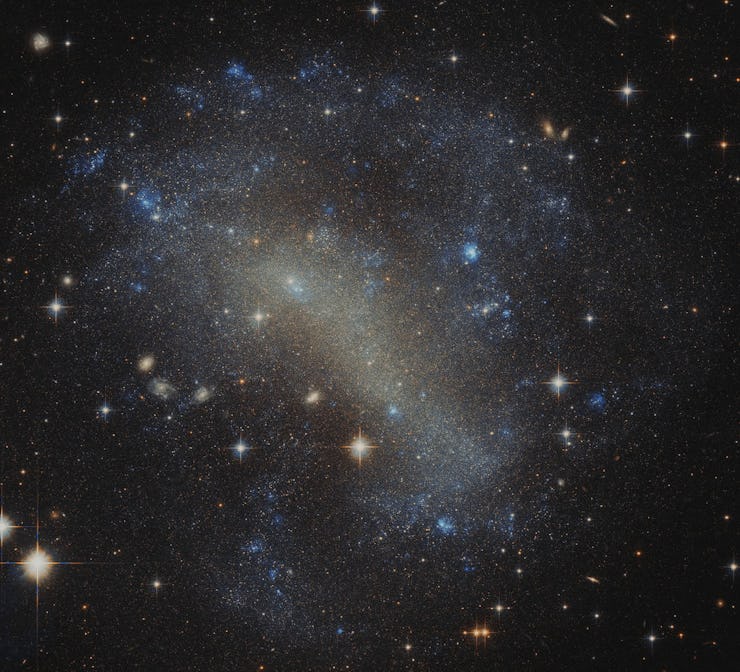 IC 4710 was first discovered in 1900 and has been captured by the Hubble Space Telescope so astronomers can further analyze its irregularities. This stellar neighborhood is in what is known as a “dwarf irregular galaxy,” and is 25 million light-years away in the Pavo constellation. These systems are far more scattered, chaotic, and lack the central bulge and spiral arms of more organized galaxies.
