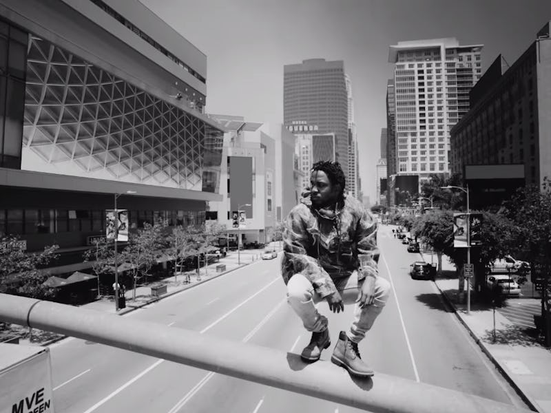 Kendrick Lamar balances history and fame in the "Alright" video.
