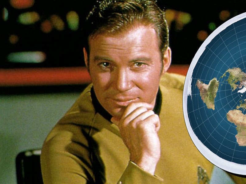 As Captain Kirk, William Shatner explored the more far-off reaches of outer space, boldly going where nobody has gone before. So, it’s really no surprise that Shatner has no time for dummies on Twitter using his image and a bogus quote to promote flat-Earth conspiracy theories. The saucer on the Enterprise is flat. The Earth is not.