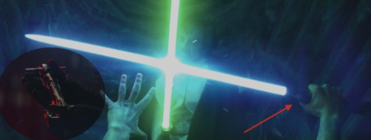 On Sunday, writing for Screenrant, Alex Leadbeater presented an excellent theory based on visual cues from The Last Jedi. Basically, now that we can freeze-frame those flashback scenes where Luke and Ben Solo rumble after Ben gets woken up from a nap, it’s pretty obvious what happened. Ben’s blue saber hilt looks pretty much exactly like his red crossguard one before he modified it. To be fair, though Leadbeater’s eyes were very sharp here, we did have a similar theory right here on Inverse just a few days after the movie came out. Either way, now that we can see Ben’s blue saber up close, it’s clear that everyone is right. It’s pretty much the same saber.