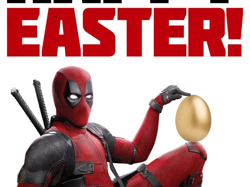 The new poster, which hit the web on March 30, is pretty simple. There’s Deadpool (Ryan Reynolds), looking pretty relaxed in front of a white background, holding a giant golden egg. Above him, in red and black, are the words “Happy Easter.”