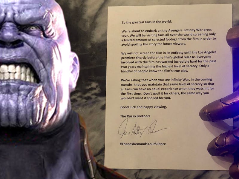 On Tuesday morning, Anthony and Joe Russo tweeted a picture of a note asking fans not to spoil what happens in Infinity War. Thanos’s gloved hand is holding onto the note, and it appears that he has gained the Time Stone in addition to the two stones we know he gets (Space and Power) because they were in the trailers. Doctor Strange is currently in possession of the Time Stone, but Thanos intends to get all of them, at some point. Perhaps this clearly non-canon picture is still giving fans a hint of what’s to come.