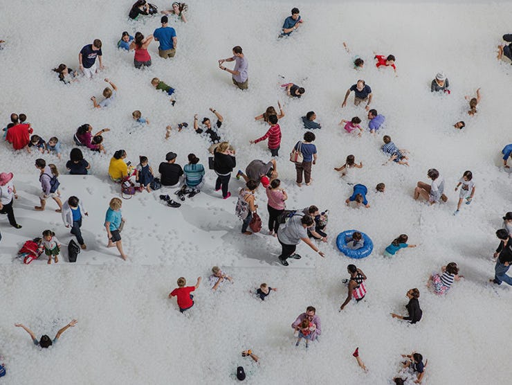 A new installation by Brooklyn-based design studio Snarkitecture at Washington D.C.’s National Building Museum seeks trigger Discovery Zone flashbacks in adults. The firm has — to unexpectedly beautiful effect — turned the museum’s main hall into a 10,000-square-foot ball pit.