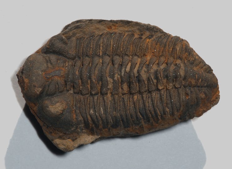 Trilobites belong to a group of marine arachnomorph arthropods that once thrived as scavengers in Earth’s waters back in the day. The earliest records of Trilobites are from 521 million years ago during the Early Cambrian period, but they really hit their stride (er, sea-bed crawl) during the Paleozoic era. Because they had such a vast geographic reach during their glory days, fossilized trilobites have made important contributions to the studies of biostratigraphy, paleontology, evolutionary biology, and plate tectonics.