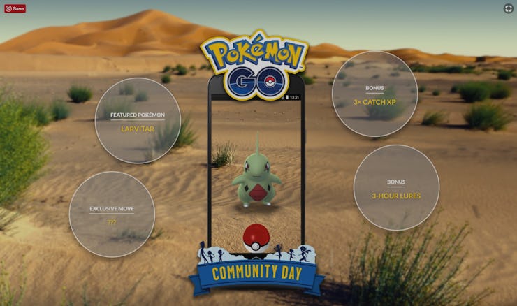 Charge up your phones and put on your best walking shoes, ‘cause another Pokémon GO Community Day is coming. The tiny but mighty Larvitar is the star of the game’s sixth Community Day event, one of several in the next few months.