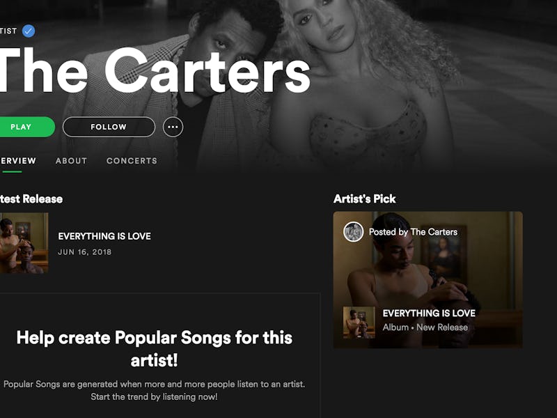Just two days after its TIDAL release, EVERYTHING IS LOVE was quietly added to Spotify, Apple Music, and Amazon Music. There’s still one TIDAL-exclusive track, but it’s unlikely that anyone will pay a monthly subscription fee just to listen to it.