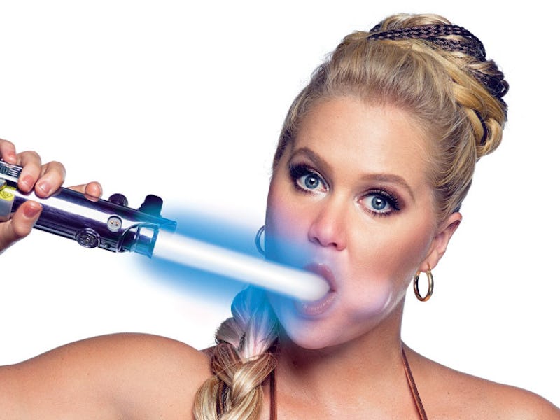 But Disney, the family-friendly dream empire that it is, isn’t showing as much sport as Lucas did. Perhaps the high-profile visibility of the GQ mag in grocery stores contributes more to Disney’s anxiousness than reruns of Robot Chicken on Adult Swim do, but Schumer’s spread also points to a new, dimmer beginning in Star Wars fandom. We’re getting new movies from now until forever, so Disney is politely asking us to stop having sex with it.