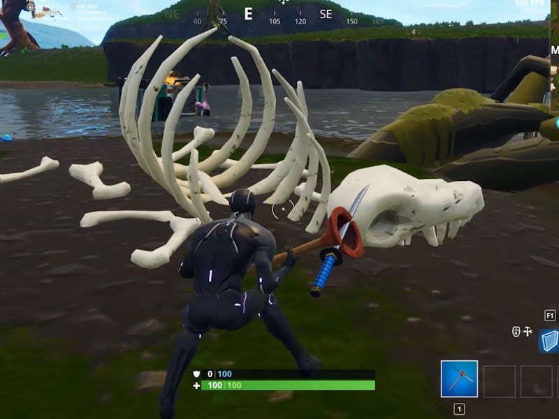 A portal appeared Monday in Moisty Mire, and then on Tuesday, it grew and then exploded to reveal a skeleton of some sort of animal or maybe a dinosaur. This latest rift is one of several to appear every day since the rocket launch at the end of June. One data miner made a list of items that would appear and disappear prior to the start of Fortnite Season 5, and the skeleton was the last on the list. With one day left, what’s next?