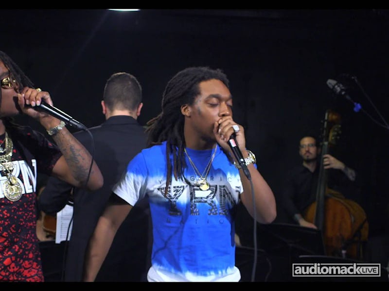Migos’ sound is loud and intense. Their rapid-fire delivery sparked the “Migos flow” trend, and their production often sounds just as upbeat. But behind all the flourishes, it’s really just some bass, drums, a melody, and some bells. Audiomack envisioned a stripped-down Migos and brought Quavo and Takeoff (the third Migo, Offset, is currently in jail) together with a nine-piece classical orchestra to perform “Hannah Montana.” Premiered by The FADER, the song places heavier emphasis on their vocals, which stand out against the subdued strings.