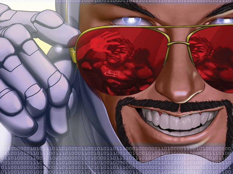 In the aftermath of the Marvel crossover AXIS, Tony Stark’s worst personality traits came to the forefront in Superior Iron Man. Stark’s ego, alcoholism, and self-destructive habits make him public enemy numero uno in the Marvel Universe as he forces San Francisco to his will through a new freemium app, Extremis 3.0. Through it all, he wears a new white armored suit with an open face, emphasizing his self-imposed messianic perspective.