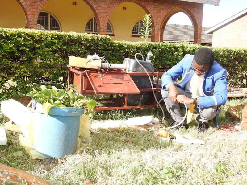 With the support of a science teacher named Mr. Ngomanyuni, who Chirara credits for his understanding of the scientific method, the biogas digester came into being. Growing water hyacinths in a slurry of organic waste and water, he diverted the newly formed methane gas into a thermoelectric generator, which measured a maximum of 1.5 volts — about the same as a standard AAA battery. If scaled up, it could provide enough power to light a home or sustain a flame for cooking without the hassle and environmental consequences of collecting and burning firewood.