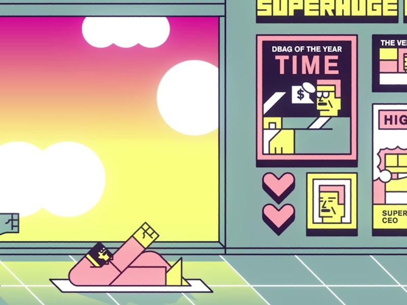“A Model Dog,” the series stand-out thus far, tells the story of two engineers who are tasked with making a robo dog for their boss, the CEO of a Google/Facebook-like company with more than a few clues he was modeled after SpaceX/Tesla CEO Elon Musk. The short story and accompanying video (Better Worlds is edited by Laura Hudson, previously culture editor at The Verge) combines a heavy dose of smart-ass humor, blocky, playful animation, and ‘80s-inspired inspirational jams. It would be easy to watch a fully developed series on the lives of these two people, and the three-minute video feels more like a pilot than a short film. Like all stories in the series, “A Model Dog” has a hopeful ending that’s slightly emotional. (Pro-tip: Be sure to read each short story and then watch the video or listen to the audio play. The axiom about books enriching the movie still applies.)