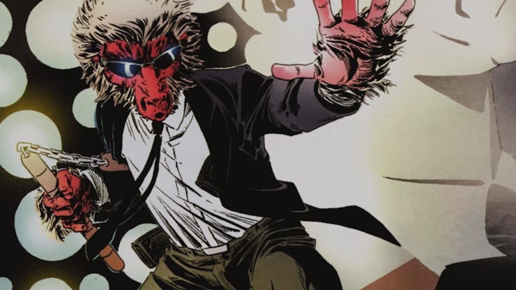 Here’s his origin: A human assassin on the run is rescued by a troop of Japanese macaques. One lone monkey teaches himself combat techniques by watching the assassin train and is eventually banished from the group. Before long, a group of assassins murders his entire clan and the lone assassin. The primate returns to find them all dead so he kills everyone involved with the massacre, and then assumes the title Hit Monkey. His quest becomes murdering assassins as a “killer of killers” with a duffel bag of guns.
