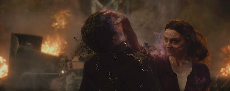 Chastain’s role as Dark Phoenix’s real villain is where the Avengers vs. X-Men nod comes in. The Phoenix Force is split up into two separate pieces. Vuk offers to take the burden from Jean, and leading into the final confrontation, they’re both the Phoenix.