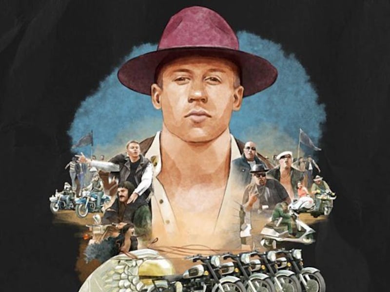 Macklemore has chosen to deal with his guilt in odd ways. He’s mostly expressed it in interviews, and stunts like the post of the apologetic text to Kendrick after Mack won the Best Rap Album Grammy for The Heist over the undeniable rap-fan favorite, good kid, m.A.A.d city. But occasionally, his desire to interact, warily, with the broader hip-hop climate creeps into the style of his music in more subversive ways. 2013’s “White Walls” was his weird tribute to nice cars, focusing on one interest of his which overlaps with typical rap-music subject matter. He recalls saving up to get that Caddy (instead of his hometown’s typical “Honda Civic”) before patching in some trap drum cadences and a Schoolboy Q verse.