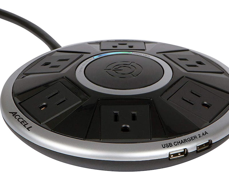 If you’re looking for a more simple surge protector, the Accell Powramid Air Surge Protector may be in order. It’s circular in shape so it’s less bulky, which can make it great for placing on a desk.