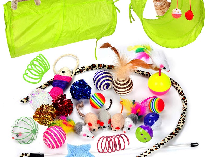 Even the most elitist cat will be entertained for hours with this epic toy pack. There are 24 pieces this bundle all designed to mildly amuse your pretty kitty, from fun activity tunnels to squeaky mice. Over 1,000 cat owners scooped up this value pack, and with a nearly perfect score, you might actually manage to make your cat happy