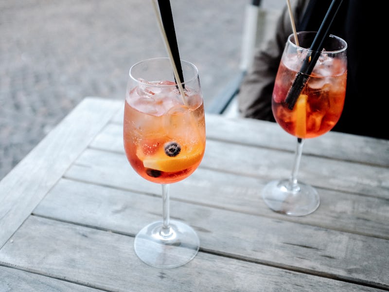 If you put your drink—iced coffee, wine cooler, ice water, soda—in a glass it will look pretty for thirty minutes. Then the ice will start to melt. A wet puddle will accumulate under the glass and destroy whatever piece of furniture is under it. (Unless you are diligent about coasters. Then it will only destroy your coasters.) You will be in a race against the heat to drink your beverage before it’s diluted. Then you’d better get that glass cleared before the mess starts.