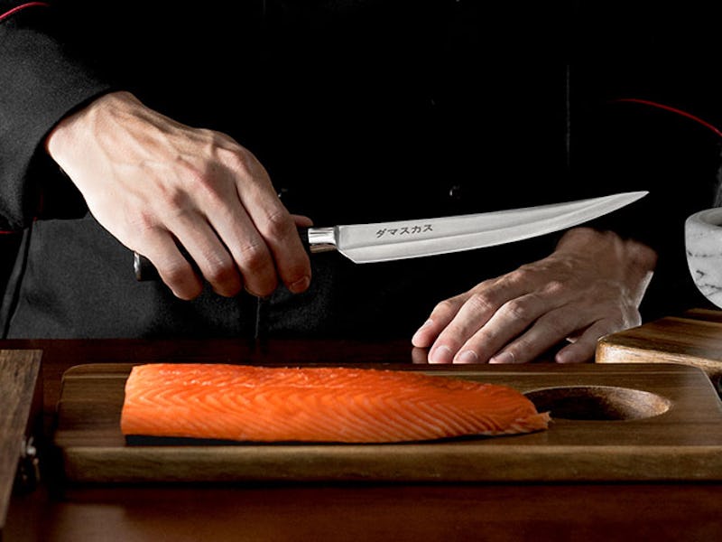 Whether you’re slicing veggies, steak or high-grade salmon you need a knife you can rely on. Or maybe three. This Damasukasu knife set features a 7” Nakiri vegetable knife, an 8.5” slicing knife, and a 5” utility knife. They’re all precision-balanced and weighted so you can employ delicate, laser-sharp slices in the kitchen and feel like a real blade master.