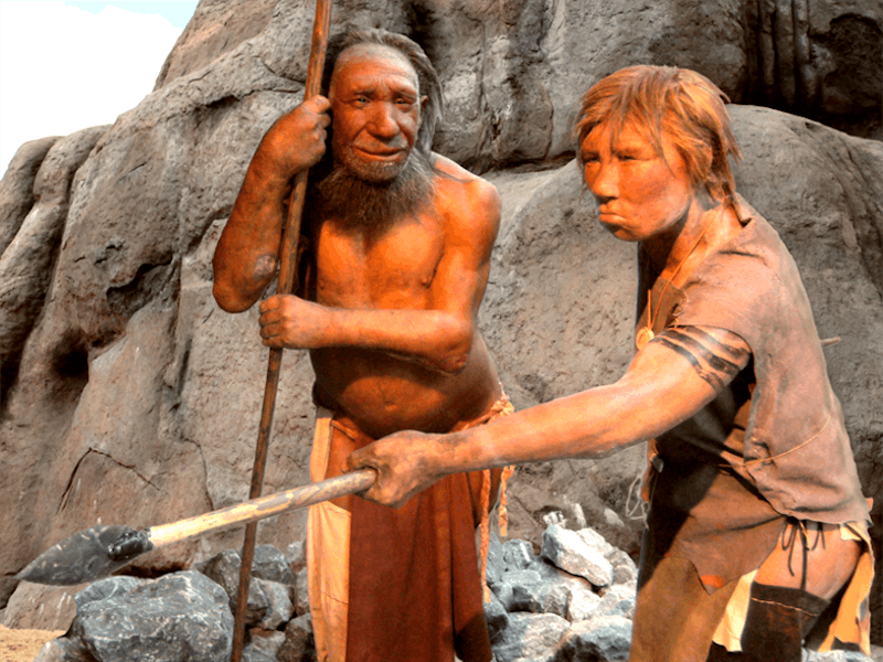 Archeological and genomic evidence indicates that, as anatomically modern humans migrated out Africa, the met and interbred with Neanderthals in western Eurasia around 50,000 to 55,000 years ago. The fact that Neanderthal genes are still so ubiquitous suggests that the initial group of modern humans they met were small and remained intact long enough for Neanderthal DNA to mix through the founding population.