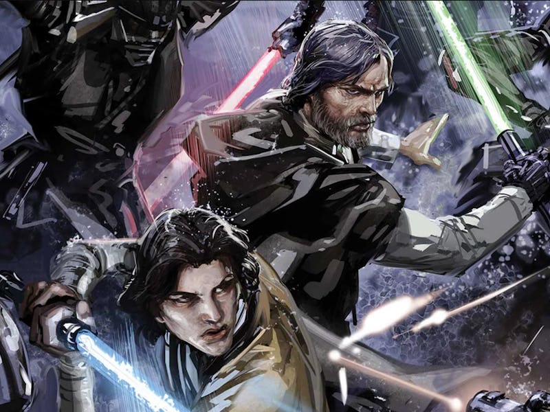 Thus far, it’s heavily implied that the Knights of Ren were fellow students of Luke who rebelled to join Kylo. But that doesn’t fall in line with the cover of Star Wars: The Rise of Kylo Ren’s second issue, released earlier this week. The artwork shows Luke Skywalker and Ben Solo fighting the Knights of Ren. Why would the Knights of Ren be fighting their supposed leader?