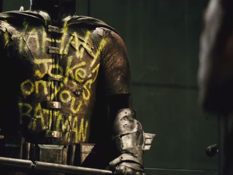 More interesting than not knowing who will be Robin is that Robin is in it at all. The Comic-Con trailer for Dawn of Justice shows an unworn, vandalized Robin costume, but that didn’t mean Robin would be definitely in it. The way Snyder talks about the character is like he’s saying Well, duh, of course he’s in it.