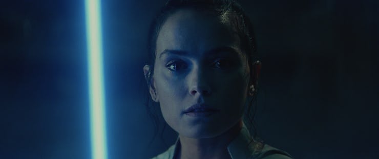 Rey with the Skywalker lightsaber in the D23 'Rise of Skywalker' trailer